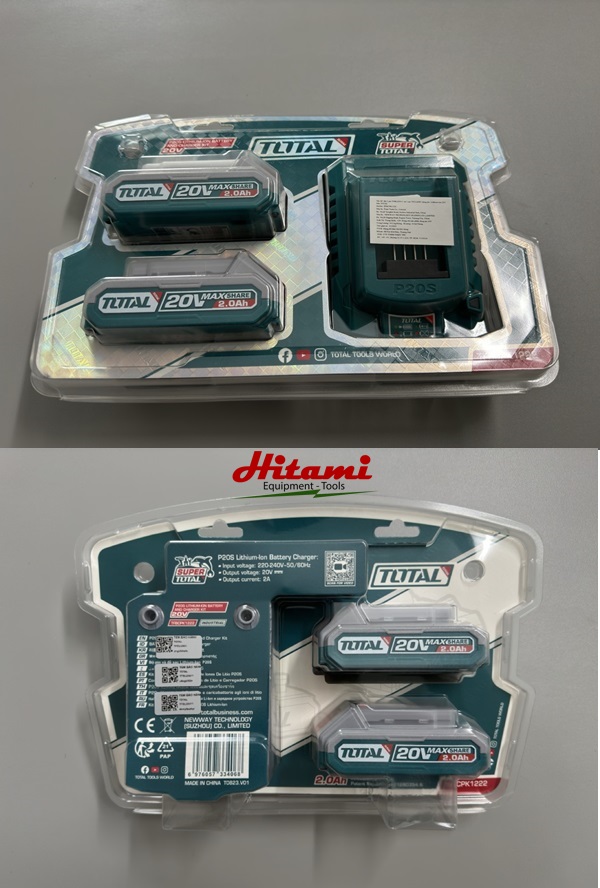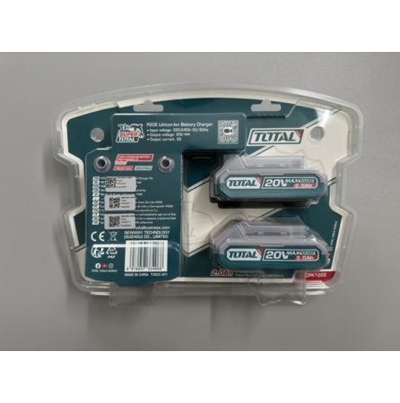 Bộ 2 pin 1 sạc 20v 2Ah 1 sạc nhanh Total TFBCPK1222 Điện áp: 20V Gồm 2 pin 2Ah (TFBLI20011) và 1 sạc nhanh (TFCLI2001)