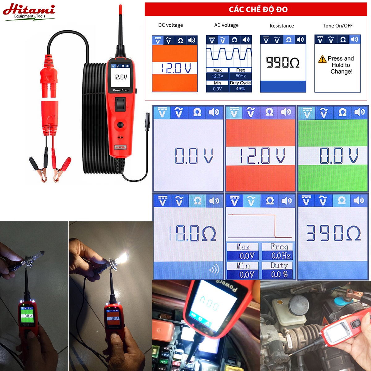 - Đo điện áp DC, AC và xác định cực âm, dương.