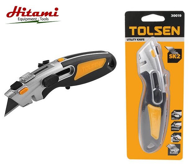 Dao rọc giấy cao cấp tolsen 30019 Thân bằng hợp kim kẽm với TPR, Chất liệu của lưỡi dao: SK2 Chức năng khóa tự động, Chức năng tự động thu vào, Lưỡi dao dễ dàng tháo lắp, Bao gồm 2 lưỡi SK2 bổ sung.