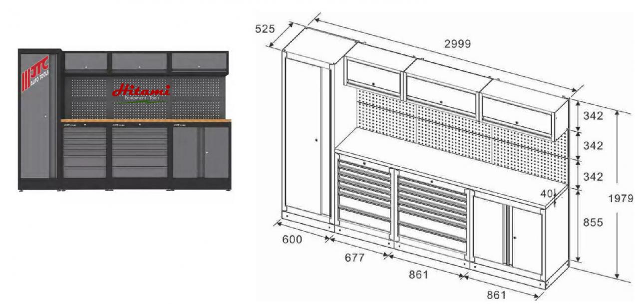 Hệ tủ dụng cụ loại đa ngăn có nhiều kệ tầng có tủ đứng được JTC sản xuất theo tiêu chuẩn châu âu phù hợp cho các gara ô tô và các xưởng dịch vụ lớn của các hãng xe ô tô.