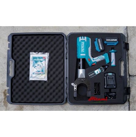 Máy cắt cáp thủy lực dùng pin Total TRCLI2002 Đường kính cắt tối đa: 85mm, lực cắt: 60KN,Nhịp cắt: 86mm kèm theo 2 pin 20V/4.0Ah.