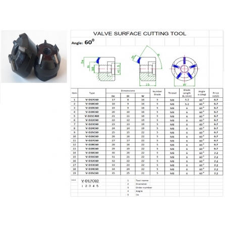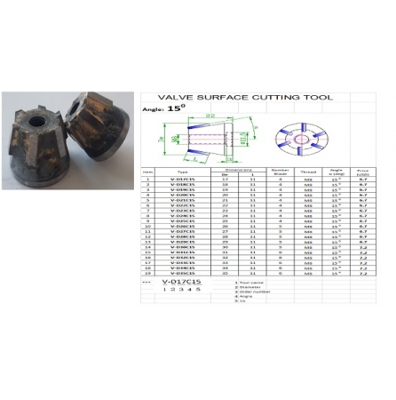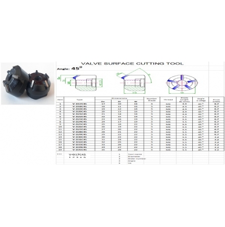 * Phụ kiện theo máy: Dao cắt gọt 15º dùng khoét bụng miệng xupap, 45º dùng lã côn, 60º khỏa mặt miệng xupap, dao 90º dùng doa trụ đóng bạc và ti doa.