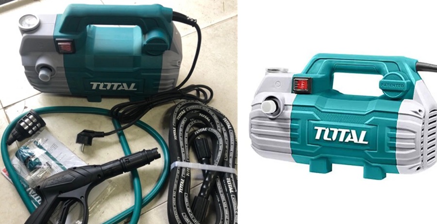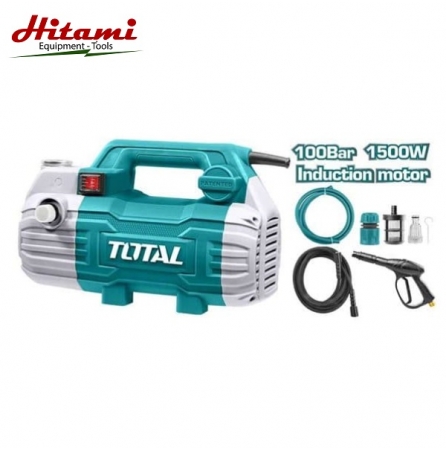 Máy xịt rửa xe mini Total động cơ dây đồng motor từ ( không chổi than). Công suất 1500w, Áp suất tối đa: 100Bar (1450PSI), lưu lượng thổi: 6.0L/p.