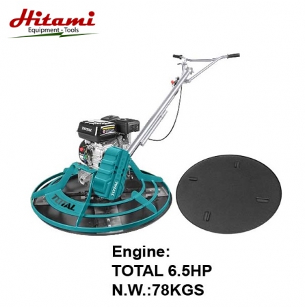 Máy xoa nền bê tông Total TP9361-2 động cơ xăng Công suất động cơ:4.8Kw(6.5HP), kèm theo chảo sắt, đường kính rotor: 91cm, có 4 lưỡi cắt; Kích thước lưỡi: 35X15cm