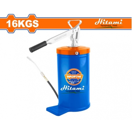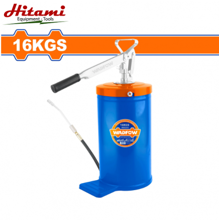 Thiết bị bơm mỡ bằng tay 16kg Wadfow WHY1A16 được thiết kế với dung tích thùng chứa 16kg làm bằng thép, Chiều dài ống bơm: 1500mm