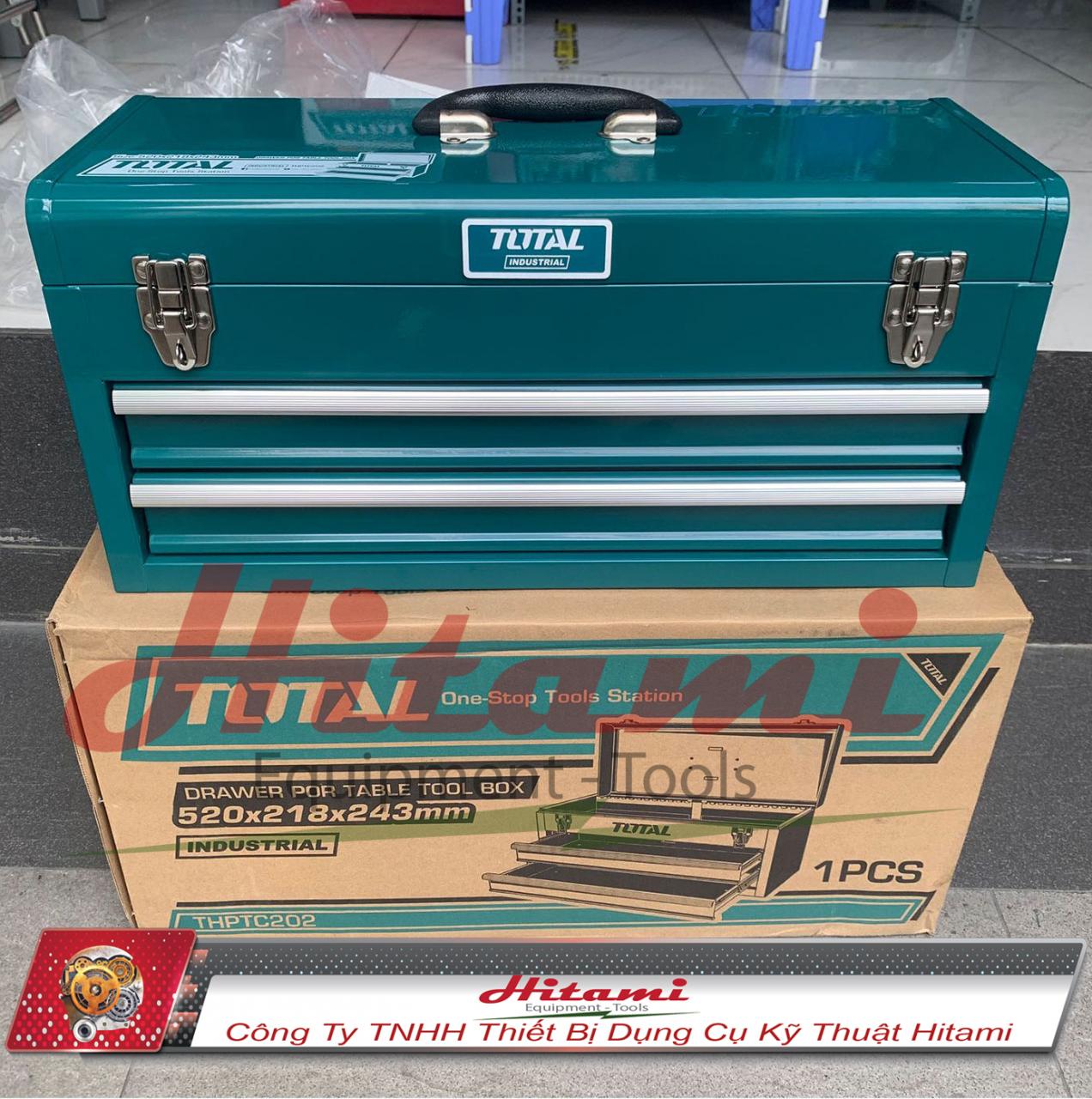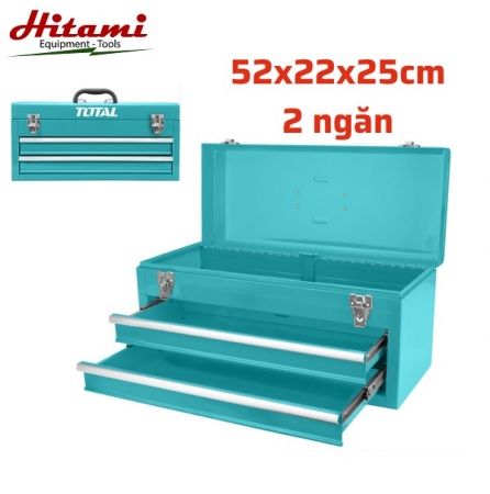 Thùng (hộp) đựng cụng cụ xách tay 2 ngăn kéo 1 ngăn chứa có nắp đậy Total, kích thước tổng thể: 520*218*243mm, độ dày của hộp công cụ: 0,8mm.